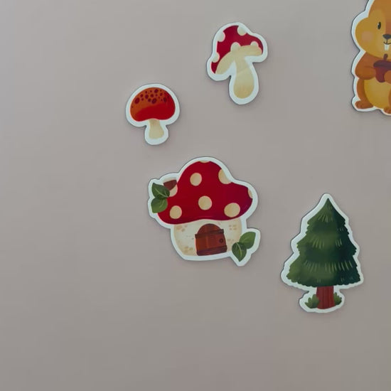 Retrouvez les amis de la forêt: ours, lapin, renard, écureuil et raton-laveur ainsi que des éléments de leurs habitats naturels.